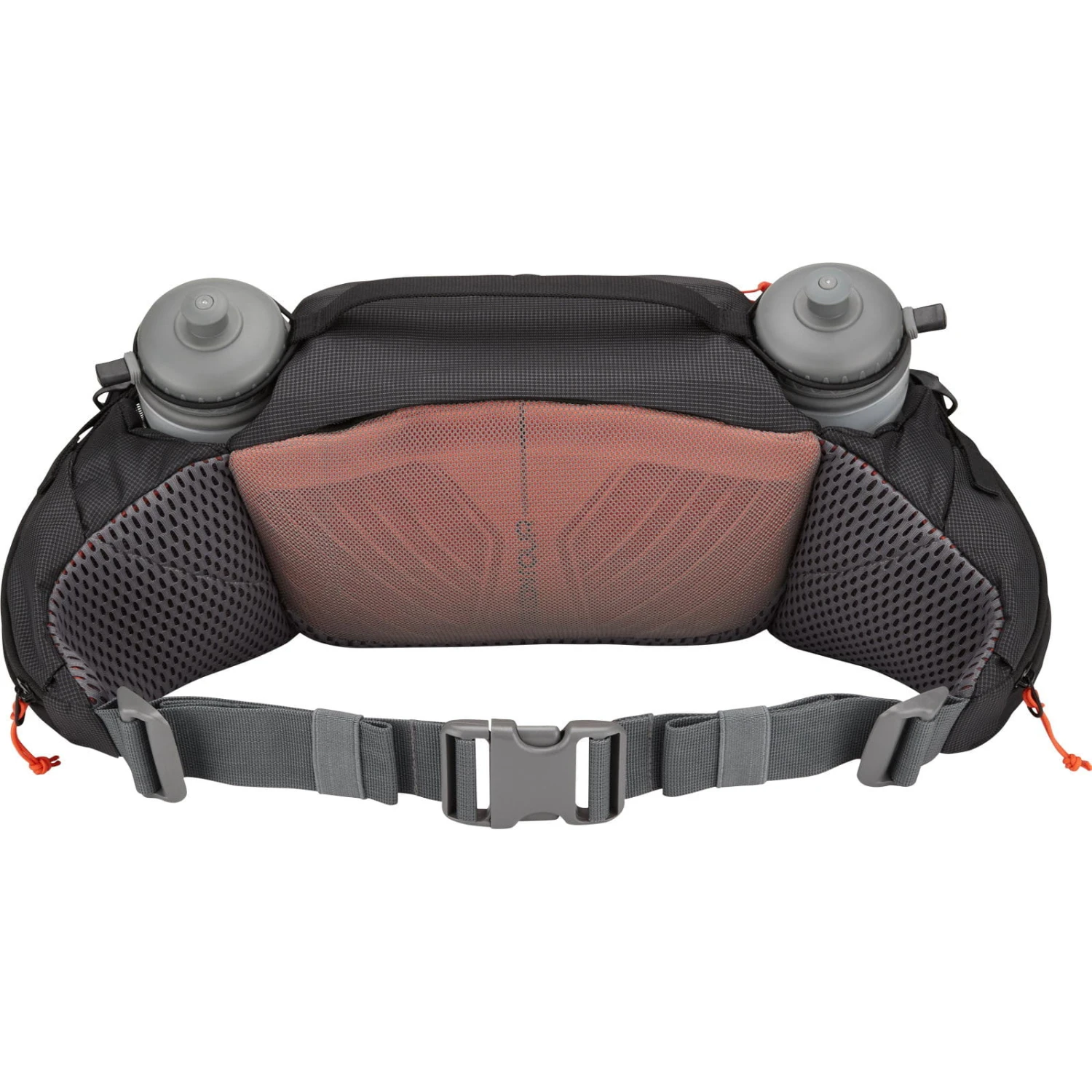 | Merkmale | Bauchgurt verstellbar von 70 bis 130 cm Umfang, Blinklichthalterung, Hauptfach mit Reißverschluss, inkl. 2 Trinkflaschen, reflektierende Elemente, Reißverschlussfach am Rücken, Schlüsselhalterung, seitliche Kompressionsriemen, Tragegriff oben, vorgeformte Form für besseren Sitz und mehr Tragekomfort, zwei Reißverschlussfächer am Hüftgurt, zwei seitliche Netztaschen |