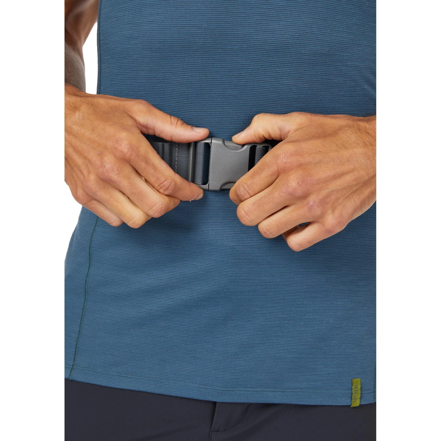 Die Nijmegen 6 von Lowe Alpine ist eine Hüfttasche mit zwei Trinkflaschen und einem großzügigen Fassungsvermögen von 6 Litern, die sich ideal als Alternative zu einem kleinen Rucksack beim Wandern, Laufen oder Radfahren eignet. Die geschwungene Form schmiegt sich an den Körper und das leicht verstellbare Hüftgurt-System lässt sich einfach nach vorn ziehen, um den Sitz zu optimieren und das Abfedern auf unebenem Terrain zu minimieren. Die stark belüftete Air Contour™ Polsterung im Lendenwirbelbereich liegt eng an und ist von offenem Netzmaterial umgeben, das für ausreichende Luftzirkulation sorgt und gleichzeitig die Schweißansammlung reduziert, damit man kühl und trocken bleibt. Reflektierende Streifen sorgen für eine gute Sichtbarkeit und wem das nicht reicht, der kann an der Blinklichthalterung ein zusätzliches Licht anbringen. Nebem dem großen Hauptfach mit Schlüsselhalter befindet sich auf der Rückseite eine zusätzliche Reißverschlusstasche für Wertsachen. Die seitlichen, elastischen Einschubtaschen inkl. Trinkflaschen (je 550 ml Volumen) werden ergänzt durch je eine Reißverschlusstasche aus elastischem Material auf den Hüftflügeln.