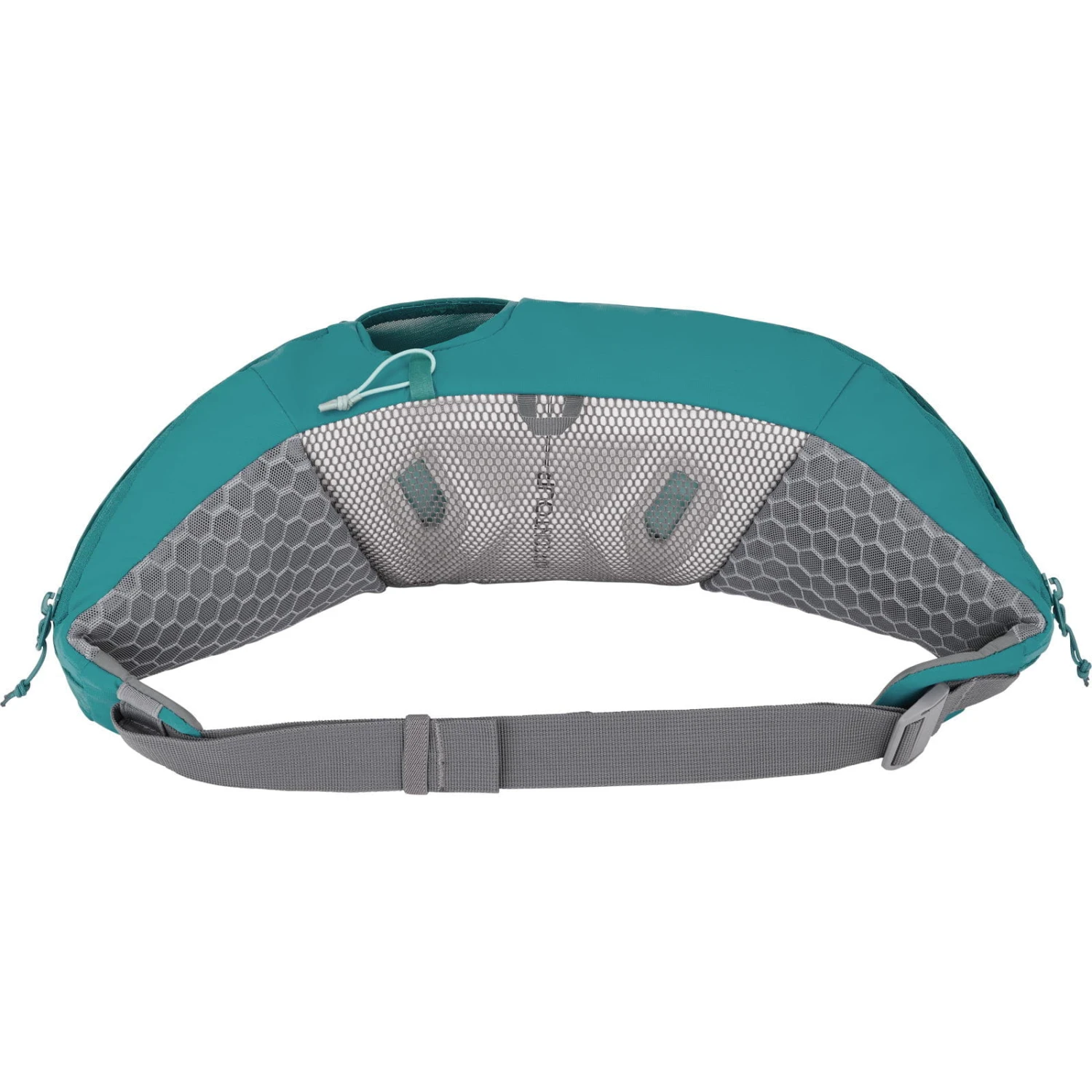 Die Aeon LT Hydro von Rab ist eine leichte, stabile und äußerst atmungsaktive Hüfttasche, die mit einer passenden 500-ml-Trinkflasche gelifert wird. Die Aeon LT Hydro wurde für schnelle Wanderungen und Aufstiege entwickelt und ist ideal, um sich in schwierigem Gelände völlig frei bewegen zu können. Die schlanke Gürteltasche mit einem Fassungsvermögen von 4 Litern ist leicht und gewölbt, um einen sicheren und bequemen Sitz zu garantieren und das Abfedern zu minimieren. Das Air Contour™-Rückensystem sorgt für die nötige Luftzirkulation und ist mit atmungsaktivem, offenem Netzgewebe umhüllt, damit man auch bei anspruchsvollen Aufstiegen und schnellen Aktivitäten in den Bergen nicht ins Schwitzen kommt. Zwei Hauptfächer mit Reißverschluss und elastische Einschubfächer an der Außenseite sorgen für Ordnung und bieten Platz für Snacks und andere Utensilien, die immer griffbereit sein sollen. Eine Reißverschluss-Sicherheitstasche und eine Schlüsselhalterung im Inneren sorgen dafür, dass Schlüssel, Smartphone oder andere Wertsachen sicher verstaut sind. Die Flaschenhalterung mit Fixiergummi hält die mitgelieferte Trinkflasche sicher am Körper und kann unterwegs leicht herausgezogen werden. Die Aeon LT Hydro Hüfttasche ist mit einer fluorcarbonfreien DWR-Beschichtung versehen und lässt sich mit einem verstellbaren, gepolsterten Gürtelzug festziehen, damit sie eng und bequem anliegt und man sich bei schnellen Bergtouren vollkommen frei bewegen kann.