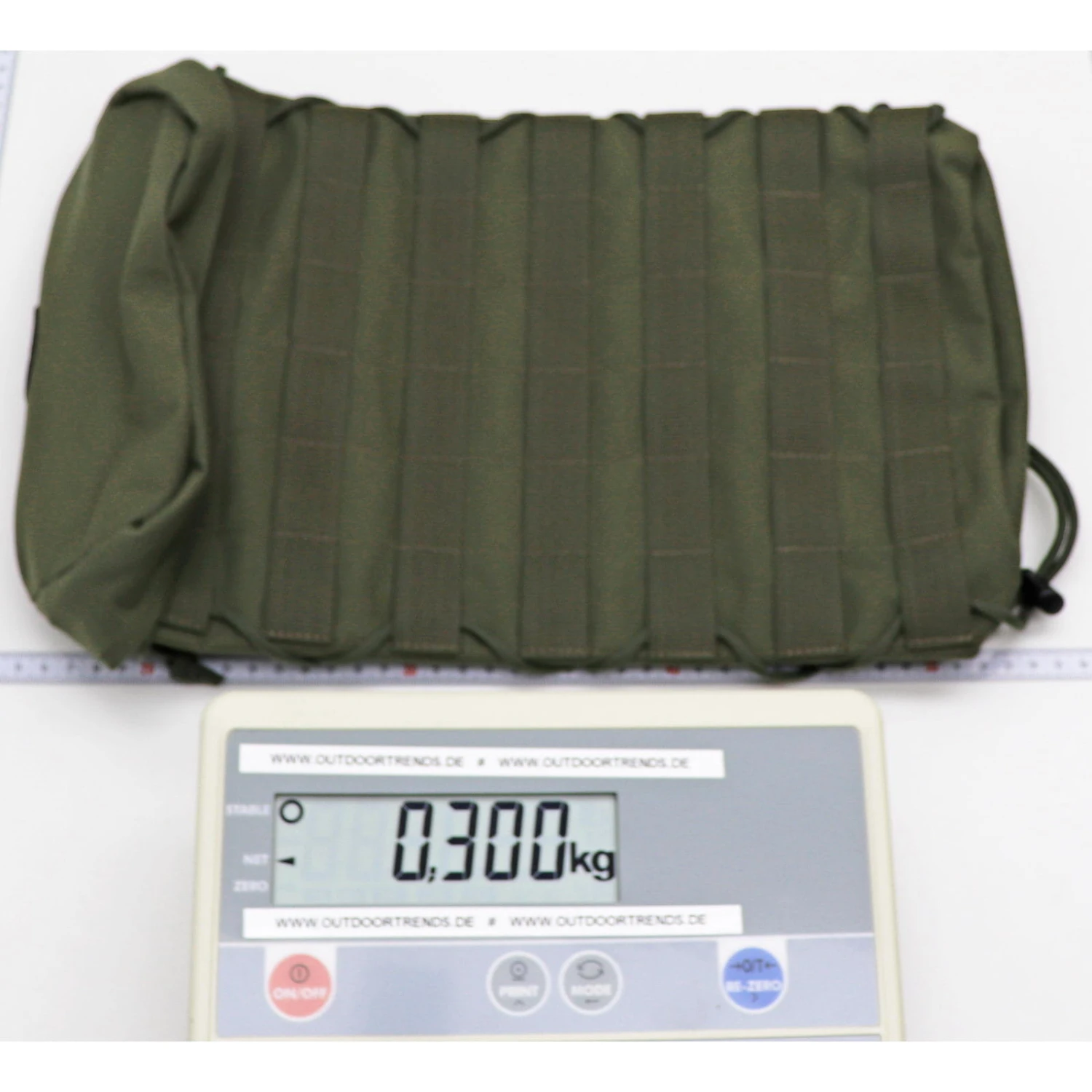 | Merkmale | benötigt fünf MOLLE-Schlaufen, MOLLE-Druckknopf-System, Seitenkompression durch Paracord-Verschnürung |