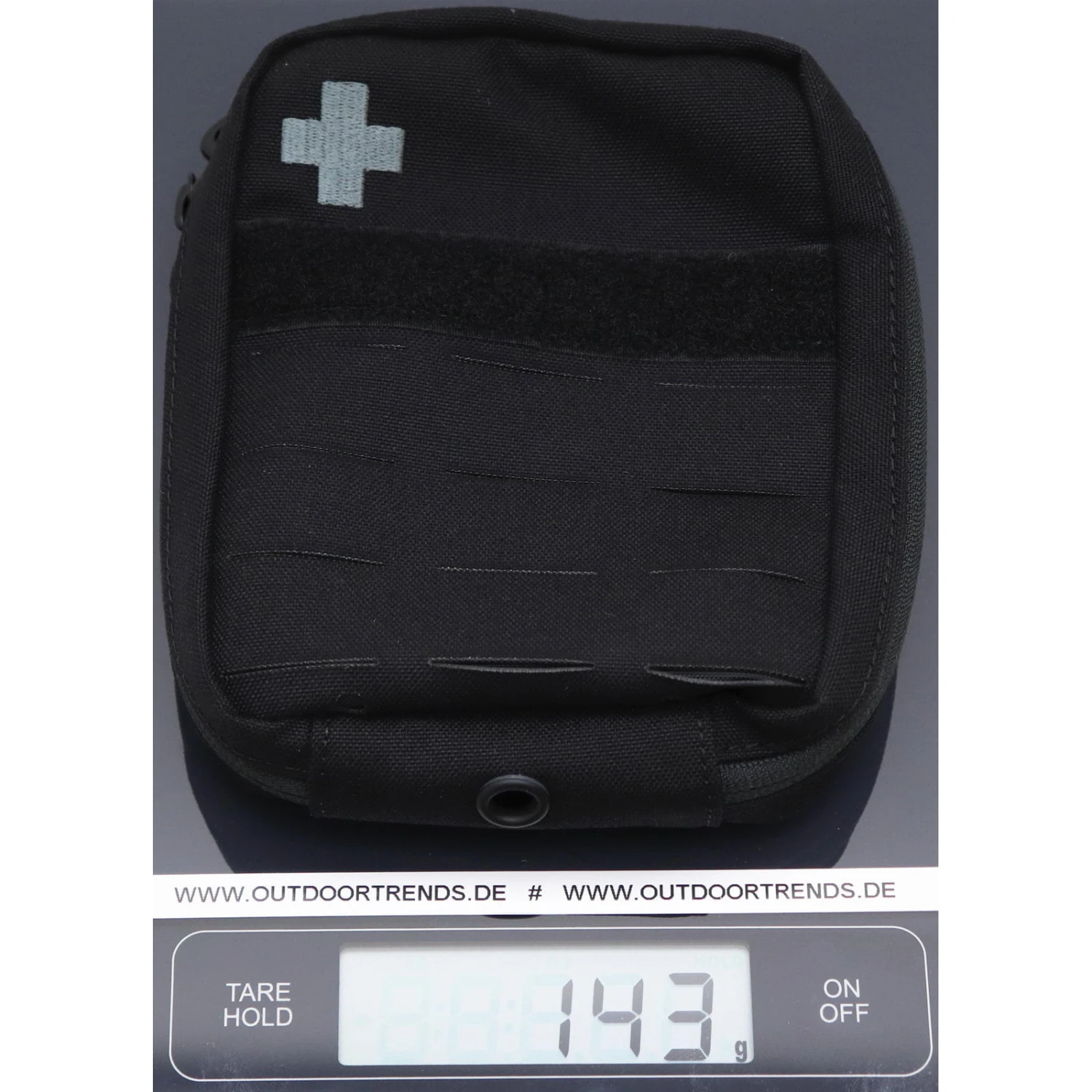 | Merkmale | Befestigungsmöglichkeit durch Gurtbandschlaufen, D-Ring innen, dauerhafte Schlaufe an der rückwärtigen oberen Kante zum leichten Herausziehen aus einer der beiden Halterungen, Einschubfach aus Mesh innen, geknotete Zipper am Reißverschluss für sicheres Greifen auch mit Handschuhen, gesticktes Kreuz in grauer Farbe auf der Front, Innenaufteilung mit diversen unterschiedlichen Befestigungsmöglichkeiten für Ausrüstung, Klettfläche auf der Front (Flausch), Lasercut-MOLLE auf Front, MOLLE-Reverse-System, passend für TT Tac Pouch Holder M (separat erhältlich), umlaufender Zweiwegereißverschluss |